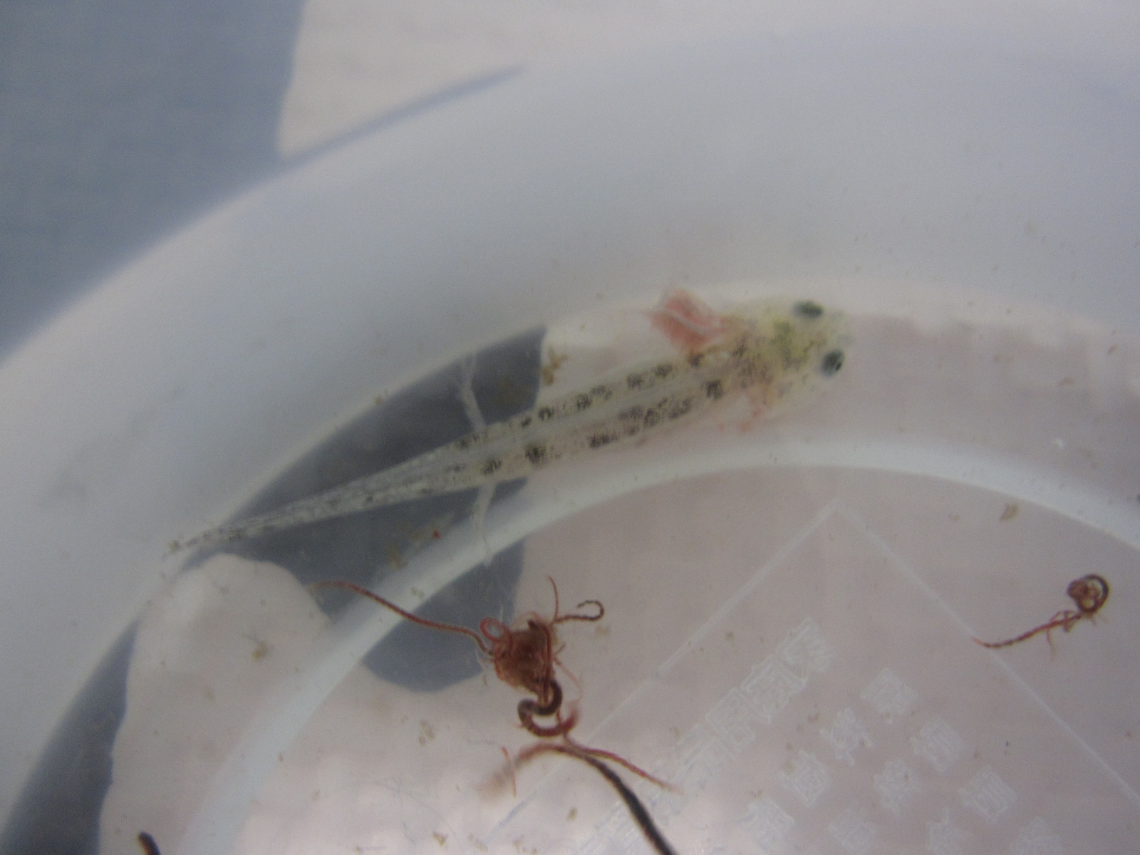 餌は毎日与えているが最少個体の片方の外鰓が無くなって