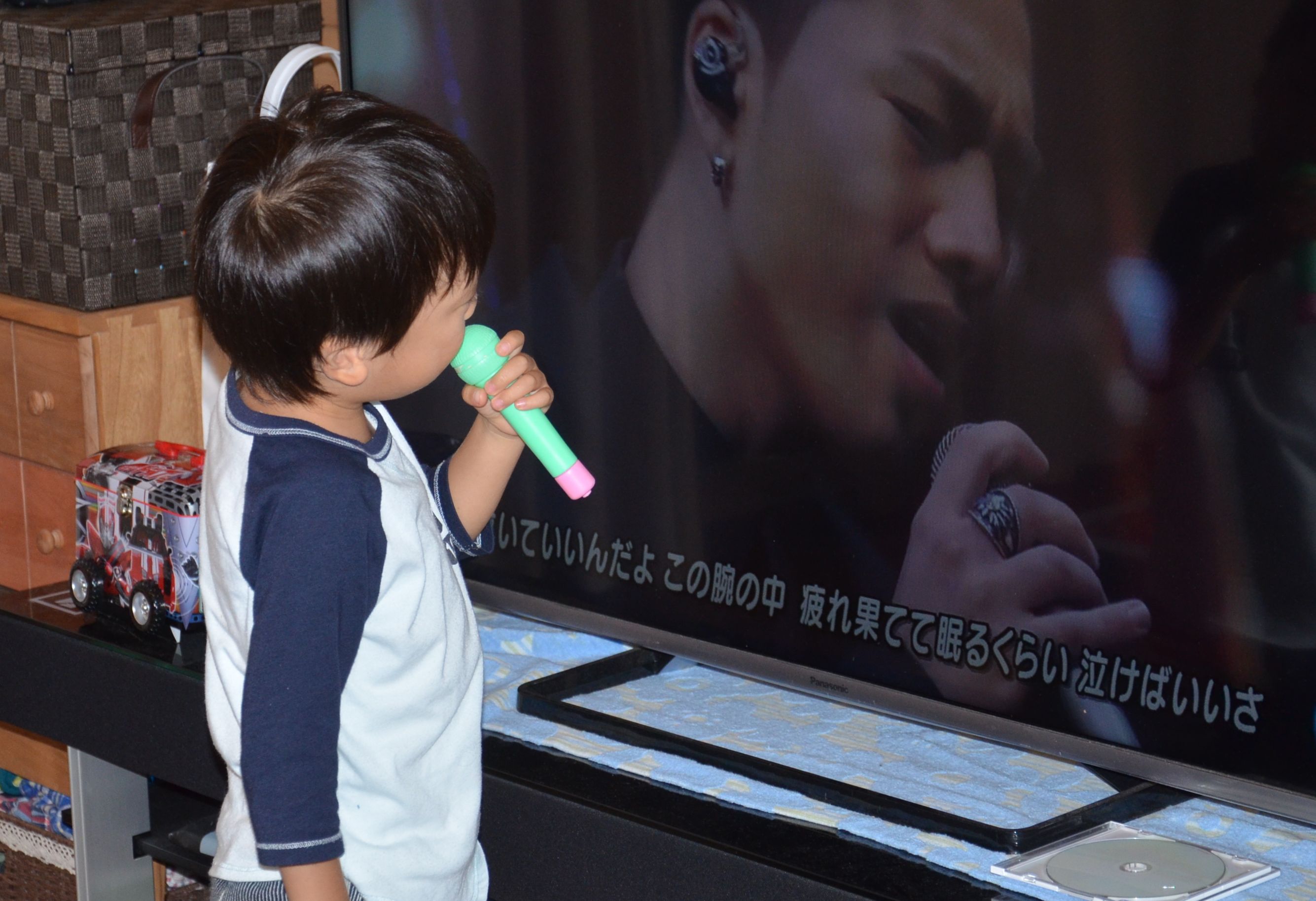 そしておもちゃのマイクを持って三代目JSBの曲を歌います!!