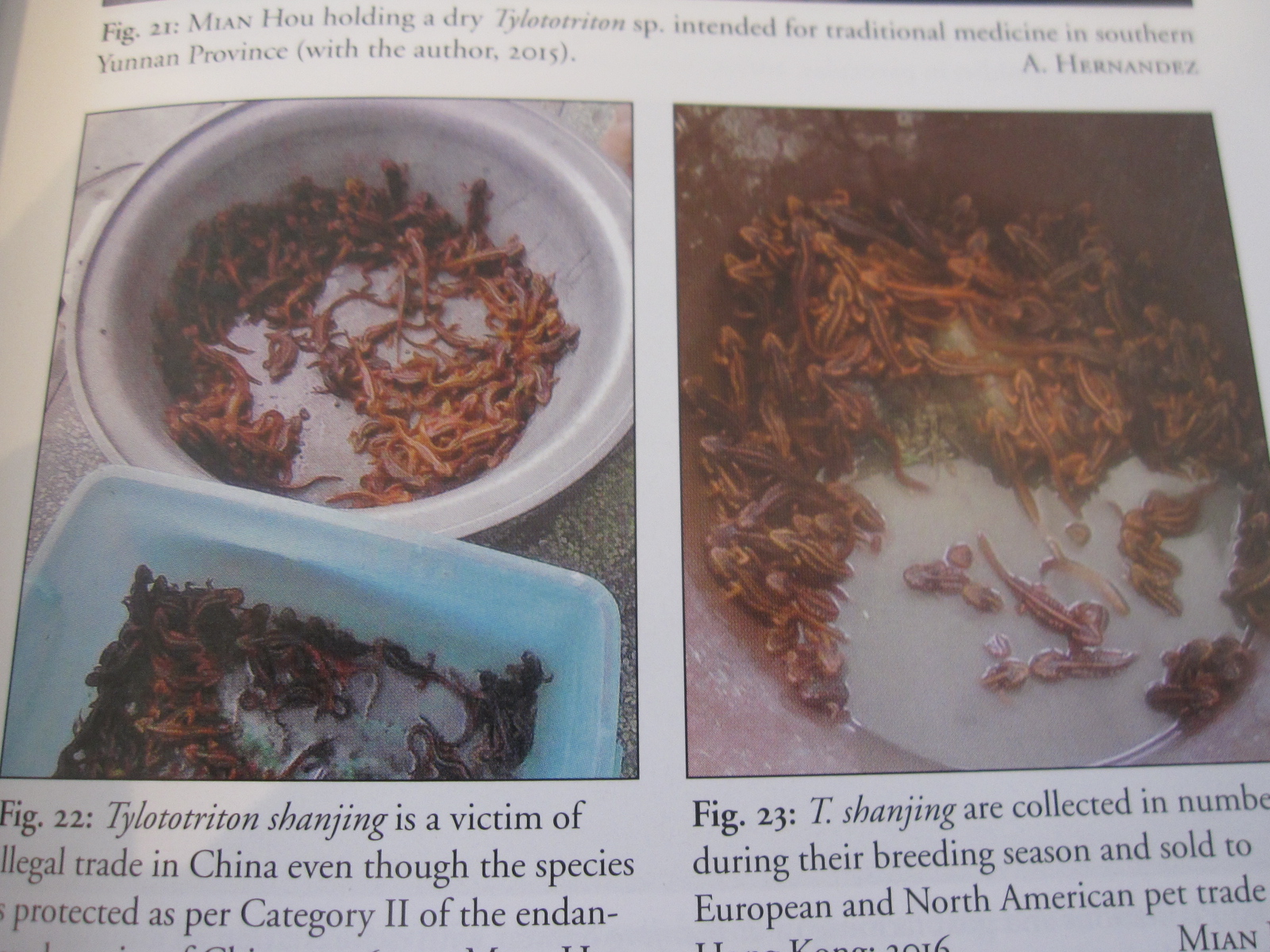 大量のシャンジン。(ヨーロッパ、北アメリカ、ペットトレードの単語が書いてある)